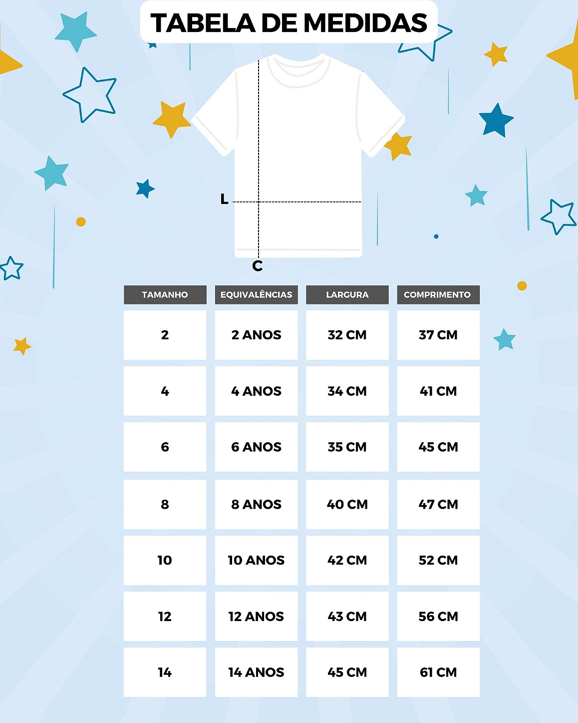 Tecido de Algodão: Feita com algodão macio e respirável, esta camiseta oferece conforto durante todo o dia, mantendo as crianças à vontade em todas as suas atividades.