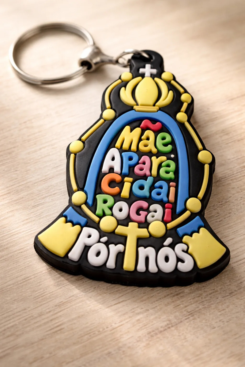 O Chaveiro de Borracha Nossa Senhora Mãe Aparecida, da marca Católicos na Moda, é uma peça única que combina fé e estilo. Com um design vibrante e colorido, este chaveiro emborrachado traz a imagem da Nossa Senhora da Conceição Aparecida, ideal para quem deseja carregar um símbolo de proteção e devoção no dia a dia.