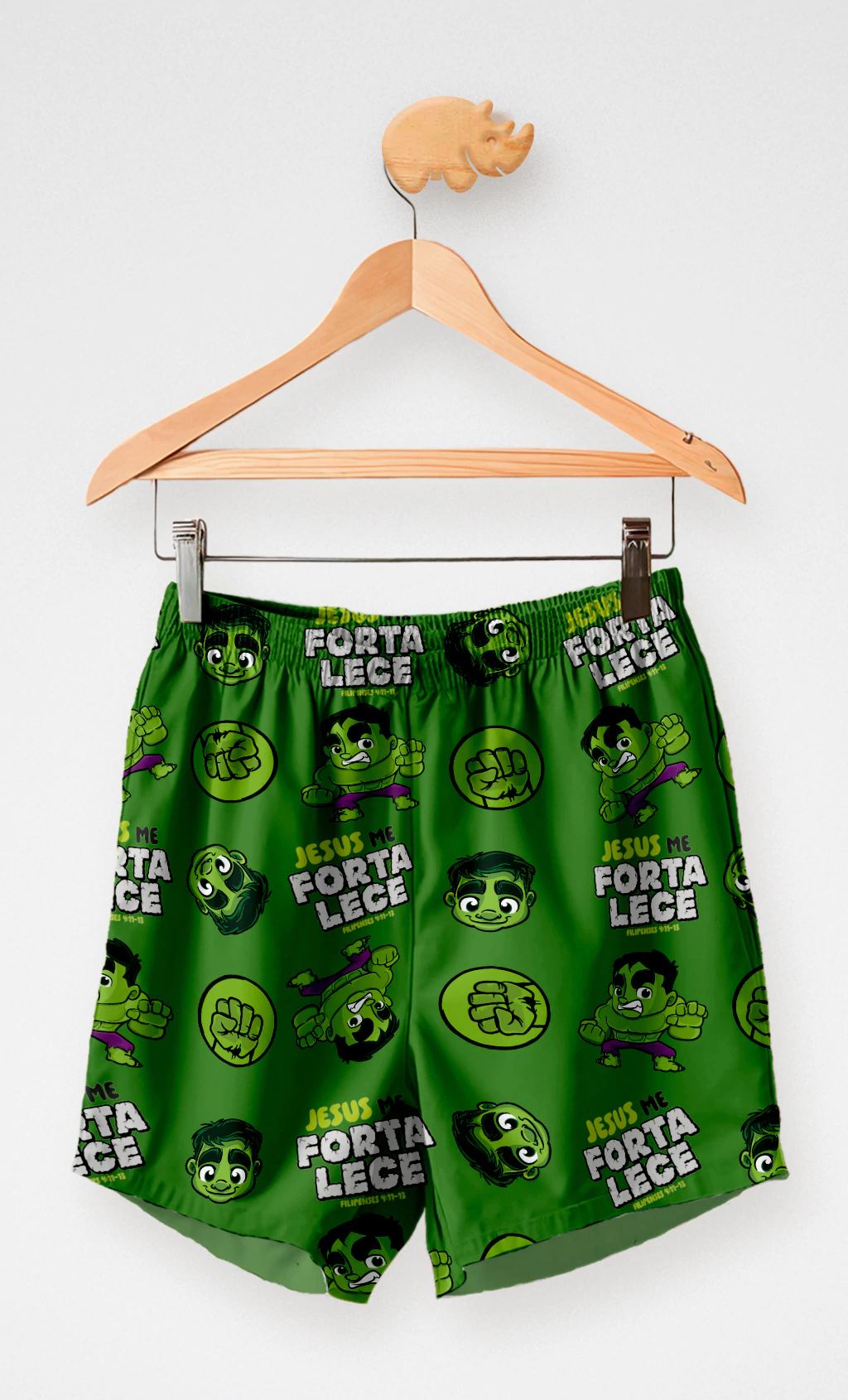Com Jesus ao nosso lado temos força para saltar muralhas e quebrar barreiras. E o nosso short de verão Jesus me Fortalece apresenta de forma divertida e encantadora esse sentimento que temos com a presença dEle.